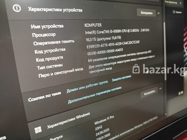 Игровой и Профессиональный Ноутбук с достаточным запасом мощности на долгие годы. 🔥Качественная модель, в стильном дизайне. 💻Подходит для програмирования| графики| дизайна| монтаж| 3D| рендер| учебы| работы| любых игр| фотошоп| фото-видео обработка| таргет| графис| архикад| автокад| маркетплейсы| 1с база+облако| бухгалтерия и касса| любые универсальные и сложные задачи по работе/учебе итд. 📌Фирма ACER NITRO 5 ♦️Состояние б/у идеальное ♦️На Процессоре I5-9300H 2.3 Ghz До 4.1 Ghz в режиме Turbo boost Полноценный. ( 8 логических ядер/ потоков) ♦️Оперативная память 16 Gb ♦️Общая память Скоростной SSD 512 Gb ♦️Видеокарта GTX 1650 - 4Gb + UhD graphics ♦️Размер экрана 15.6 Дюймов (Full hd ips) 1920x1080 ♦️Установлен свежий Windows 11 + программы для офиса и работы. 🔦Подсветка клавиатуры 🔋Батарея 3-4 часа и выше, зависит от нагрузки. 🍁Крепкий и Стильный корпус, премиального качества.С подсветкой. 🎶Отличный, профессиональный звук 🎟️Большой обьем памяти, для хранения ваших данных 512 Gb 👍Одна из лучших моделей по охлаждению для сложных задач. 🎁При покупке в подарок: Комплект Зарядное устройство, мыш, сумка для ноутбука. 📍3 месяца гарантии ❌Обмена и рассрочки нет 🚗Бесплатная доставка по всему Кыргызстану 📌Есть камера, встроенный микрофон. Wi-fi, bluetooth, usb 2:0-3.0, hdmi. Встроенные динамики, card rider, Lan.