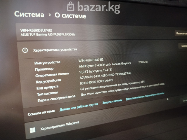 💻ASUS TUF GAMING A15 Привозной из США🇺🇸 Мощный Игровой производительный ноутбук для игр/графических работ/дизайна/монтажа/фото видео обработки/3D/программирования и других сложных универсальных задач 🔹Процессор: Ryzen 7-4800H 2.7 Ghz до 4.5 ghz boost 8 ядер/ 16потоков 🔹Видеокарта RTX2060-6Gb + Radeon Graphics 🔹Озу 16 Gb 🔹Память для хранения 512 Gb SSD Nvme, скоростной 🔹Экран 15.6 FHD IPS (1920x1080) 144 гц 🔹Состояние б/у идеальное, полностью готов к работе 🔋Батарея отличная 🔦Подсветка клавиатуры RGB с возможностью настройки в любой цвет 🔸Установлен свежий Windows 11+программы для офиса и работы 🔸Есть все необходимые разьемы: камера, встроенный микрофон. Wi-fi, bluetooth, usb 3х, hdmi. Встроенные динамики, Lan, Type-s, разъём для наушников 🚗Бесплатная доставка по городу и всему Кыргызстану 🎁В подарок сумка+мышка+коврик 🔌Зарядка в комплекте 📋Гарантия 3 месяца ❌Обмена и рассрочки нет