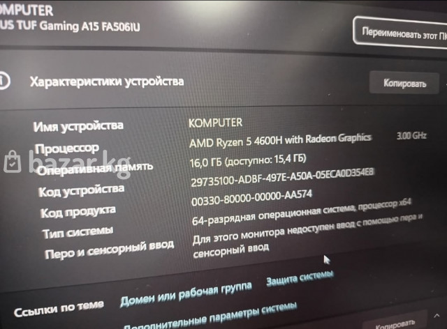 ASUS TUF GAMING Привозной из США🇺🇸 В Отличном состоянии Мощный игровой ноутбук для графики/монтажа/дизайна/3D работ/архитектуры/разные игры/фото-видео обработки/програмирования и подобного 🔹Процессор: Ryzen 5-4600H 3.0 Ghz + турбобуст до 4.0 ghz boost 12 логических ядер/ потоков 🔹Видеокарта GTX 1650ti - 4GB 🔹Озу 16 Gb 🔹Память для хранения скоростной m2 SSD 512 Gb 🔹Экран 15.6 дюйм FHD IPS (1920x1080) 144 герц 🔹Состояние б/у идеальное, полностью готов к работе 🔋Батарея в режиме интернет серфинга 2-4 часa и выше 🔦Подсветка клавиатуры 🔸Установлен свежий Windows 11+программы для офиса и работы 🔸Есть все необходимые разьемы: камера, встроенный микрофон. Wi-fi, bluetooth, usb 3х, hdmi. Встроенные динамики, Lan, type-s, разъём для наушников 🚗Бесплатная доставка по городу и всему Кыргызстану 🎁В подарок сумка+мышка 🔌Зарядка в комплекте 📋Гарантия 3 месяца ❌Обмена и рассрочки нет