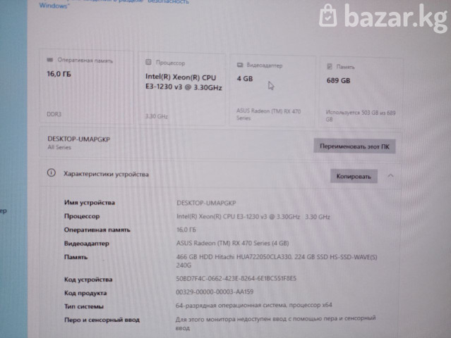 💥 Игровой Компьютер за 30 900 Сом! 💥 Полный Комплект Монитор AOC I2476VW 1920x1080 VGA, DVI ADS-IPS матрица 💥 Клавиатура Мышка Коврик новые 🎯 Количество ограничено — успей забрать! 💥 Системный блок Цена 23 500 Сом 🛡️ Гарантия: 6 месяц 💻 Системный блок | i7 4770 4 ядра 8 потока | RX 470 4GB | 16GB | SSD 🔥 Отличный вариант для игр и повседневной работы 🧠 Характеристики: • Процессор: Intel Xeon 1230v3 (аналог i7 4770) • Мат. плата: Socket 1150, ASUS • ОЗУ: DDR3 — 16GB 1600 Mnz • Видеокарта: RX 470 4GB GDDR5 256BIT • SSD: 240GB Новый • HDD: 500GB • Кулер: DEEPCOOL • БП: 500W • Корпус: 🎮 Уже установлены: 👉 GTA V, 👉 Red Dead Redemption 2, 👉 Cyberpunk 2077, 👉 Days Gone 👉 Просто включай и играй! 👉 Комплектацию можно изменить! 💰 Цена: 23 500 Сом Системный блок ♻️ Возможен Trade-in 🛡️ Гарантия: 6 месяц 👉 Цена 30 900 Сом Полный Комплект Монитор AOC I2476VW 1920x1080 VGA, DVI, ADS-IPS матрица 23.6-дюймовый Клавиатура Мышка Коврик НОВЫЕ 📸 Видео, тесты, фото комплектующих — высылаем в WhatsApp 🚚 Доставка: • Бишкек — 150–300 сом • Регионы — по договорённости 📲 WhatsApp: 🌐 www.kaufmannservices.pro 🕘 Без выходных, с 09:00 до 22:00 📌 Код товара: 606