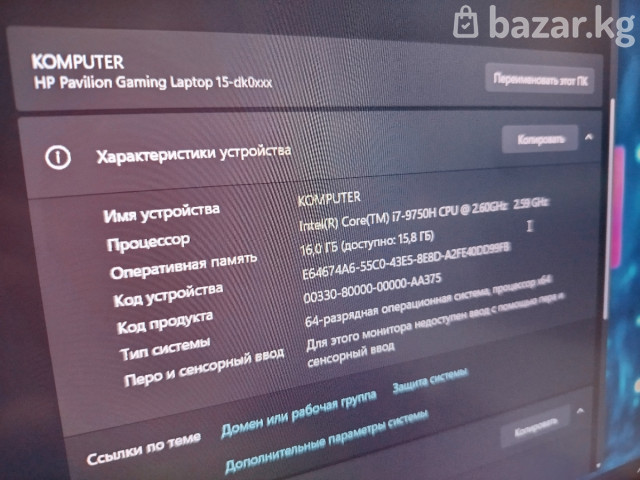 HP PAVILION GAMING Привозной из США🇺🇸 В новом состоянии Мощный Игровой производительный ноутбук для игр/графических работ/дизайна/монтажа/фото видео обработки/3D/программирования и других сложных универсальных задач 🔹Процессор:Intel Core i7-9750H 2.6 Ghz до 4.5 ghz boost 12 логических ядер/потоков 🔹Видеокарта GTX1660ti-6Gb+Intel(R) UHD Graphics 🔹Озу 16 Gb 🔹Память для хранения 512 Gb SSD 🔹Экран 15.6 дюйм - 144 гц 🔹Состояние б/у идеальное, как новое, полностью готов к работе 🔋Батарея в режиме интернет серфинга 2-4 часа и выше 🔦Подсветка клавиатуры 🔸Установлен свежий Windows 11+программы для офиса и работы 🔸Есть все необходимые разьемы: камера, встроенный микрофон. Wi-fi, bluetooth, usb 3х, hdmi. Встроенные динамики, Lan, Type-s, разъём для наушников 🚗Бесплатная доставка по городу и всему Кыргызстану 🎁В подарок сумка+мышка+коврик 🔌Зарядка в комплекте 📋Гарантия 3 месяца ❌Обмена и рассрочки нет