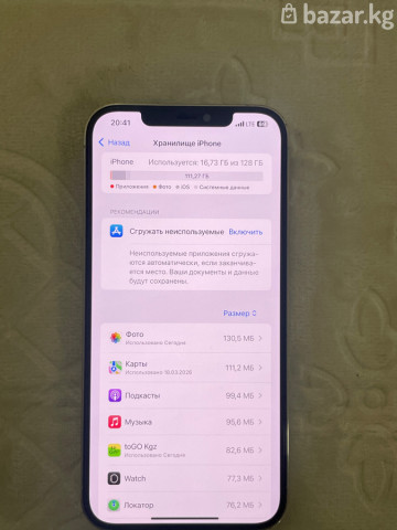 Белый iPhone 12 Pro Max Память: 128 ГБ Состояние: идеальное Аккумулятор: 81% (родной) Без ремонтов — ничего не менялось Все работает четко, без ошибок, телефон полностью рабочий.