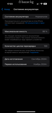 Продается айфон 16 про макс в черном цвете, в идеальном состоянии, без царапин, без сколов, батарея 99%, 100 циклов перезаряда, рассрочки и обмена нет. Цена окончательная.