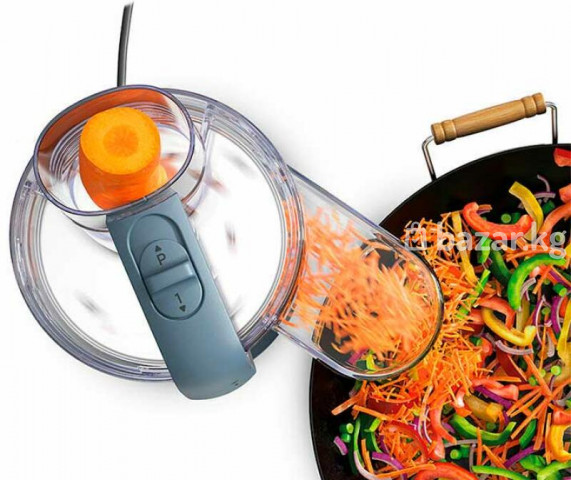 Компактность: высота MultiPro Go в собранном виде составляет всего 30 см, и он помещается (почти) на любую полку. Универсальность: этот компактный кухонный комбайн ваша правая рука при приготовлении пищи, он подходит для нарезки, терки, пюре и даже замешивания теста. Управление на 360°: функция «Экспресс-подача» также позволяет легко и несложно работать на 360° и готовить в любом направлении прямо в рабочий контейнер. Емкость: с помощью рабочего контейнера объемом 1,3 л можно обработать рабочий объем 0,75 л. Функции: Кухонный комбайн имеет 1 скорость и импульсный режим. функция и поставляется с 4 насадками, такими как экспресс-подача - для неограниченного нарезания и терки, рабочий контейнер объемом 1,3 литра, 1 нож из нержавеющей стали, реверсивный рабочий диск из нержавеющей стали для резки и терки. Основные харакетристики Вес нетто, кг 1,8 Количество скоростей 1 Цвет Синий Количество насадок 4 Мощность, Вт 650 Габариты (ВхШхГ) 23x15x29