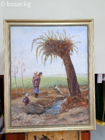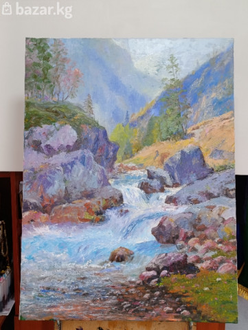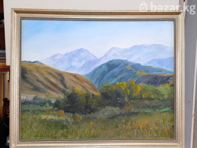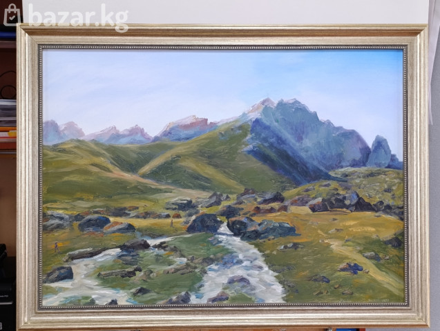 Авторские картины маслом на холсте — пейзажи Центральной Азии. - Сюжеты: горные долины, реки и мост, юрты на пастбищах, сельский дом на фоне хребтов. Жанровые и пейзажные работы, передающие атмосферу высокогорья, простор и игру света. - Техника: масло по холсту, живописная фактура, чистые холодные и теплые оттенки, воздушная перспектива. - Оформление: часть работ представлена в классических багетных рамах серебристых тонов; есть полотна без рамы. - Форматы: средние и крупные (подходят для гостиной, кабинета, холла, загородного дома, интерьеров в современном и классическом стиле). По всем вопросам Напишите на Ватсапп 0502438585