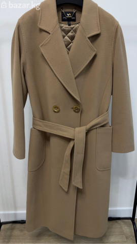 Двубортное женское пальто цвета беж кэмел (верблюжий оттенок). Производство Италия. Кашемир высокого качества. - Классический прямой силуэт длиной ниже колен. - Отложной лацканный воротник. - Застёжка: два ряда пуговиц + пояс из той же ткани. - Внешние накладные карманы. - Стёганная подкладка для дополнительного тепла и комфорта. - Аккуратная отделочная строчка по краям лацканов и бортов. - Красивый трендовый шоколадный цвет, легко сочетается с любым гардеробом. Идеально для праздничных и деловых образов в прохладный сезон.