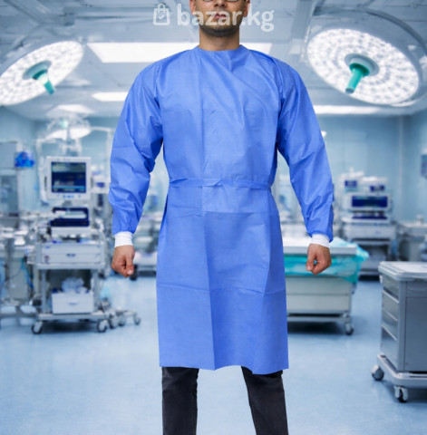 Халат Хирургический Из плотного материала,рукав на манжете .. с завязками на спине Цена за 1 шт /170 сом