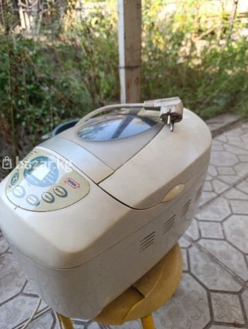 Хлебопечь QUIGG (Германия), модель MD 10259. Печь рабочая, тесто замешивает, нагревается, выпекает, все функции работают . Ссылкой перекину вам инструкцию на Ватсапп, на русском языке Основные особенности: - Полностью автоматическая выпечка: замес, расстойка, выпечка. - Панель управления с дисплеем и кнопками: Menu, Start/Stop, Timer, настройка размера буханки (Klein/Mittel/Groß), степени поджаристости корки (Hell/Mittel/Dunkel), функции Warmhalten/Подогрев. - Программы (подписи на панели на немецком): пшеничный хлеб, цельнозерновой, французский, сладкий, быстрый, тесто, улитки/булочки, джем/мармелад, выпечка, а также экспресс-режим. - Смотровое окно в крышке. - Съемная форма с антипригарным покрытием и двумя лопатками. - Вентиляционные отверстия по бокам корпуса. - Электропитание через стандартную вилку Schuko.