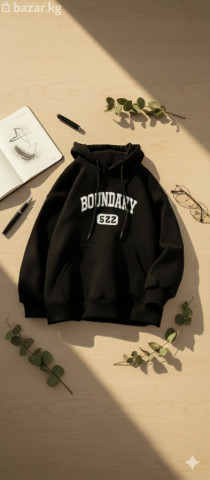 - Классический крой с капюшоном на шнурке -Синтетика - Флис/трикотаж средней плотности: мягкий, тёплый, держит форму - Большой кенгуру‑карман спереди - Эластичные манжеты и пояс - Контрастный принт “BOUNDARY 522” на груди - Унисекс, подходит для повседневной носки, учебы, прогулок и спорта - Легко сочетать с джинсами, джоггерами и кроссовками - Уход: машинная стирка на деликатном режиме, выворачивать перед стиркой, не гладить по принту Цвет: черный Детали: шнурки с наконечниками, мягкая внутренняя сторона, аккуратные швы.