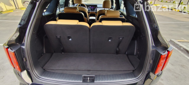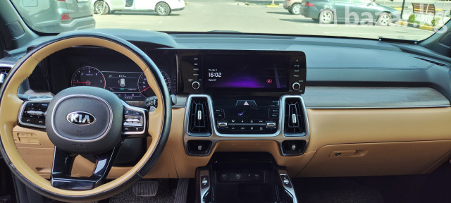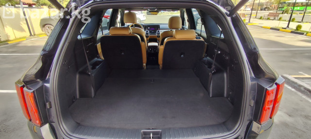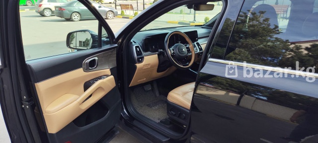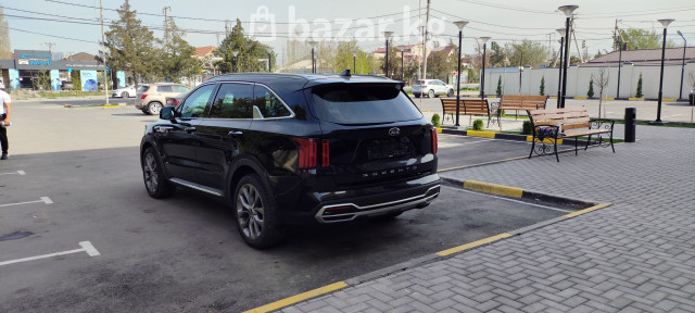 Kia Sorento (актуальное поколение), кроссовер/7‑местный SUV Характеристики и оснащение: - Кузов: черный, фирменная решетка радиатора Tiger Nose, светодиодные фары/ДХО, задние LED‑фонари - Диски: легкосплавные, крупного диаметра, низкопрофильные шины - Салон: комбинированная отделка светлой и черной кожей, мультиконтурные передние сиденья с электроприводом, многофункциональный кожаный руль - Панель: широкий цифровой дисплей приборов и медиасистемы, современная архитектура передней консоли - Комфорт и удобство: двузонный климат‑контроль, обогревы, ключ‑без‑ключа/кнопка Start, электрорегулировки сидений, задние парковочные датчики и камера, круиз‑контроль - Безопасность: комплекс систем помощи водителю, ABS/ESP, подушки безопасности по периметру - Практичность: просторный второй ряд, возможен третий ряд сидений, большой багажник с ровной погрузочной площадкой, рейлинги на крыше - Экстерьерные акценты: хром‑молдинги, серебристые защитные вставки бамперов, тонированные стекла Автомобиль сочетает выразительный дизайн, технологичный интерьер и высокий уровень комфорта для семьи и дальних поездок. Подходит для города и трассы, с экономичным современным двигателем и продуманными системами помощи водителю.