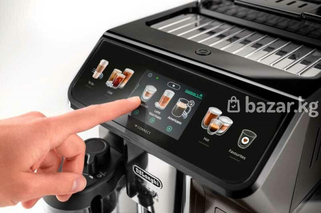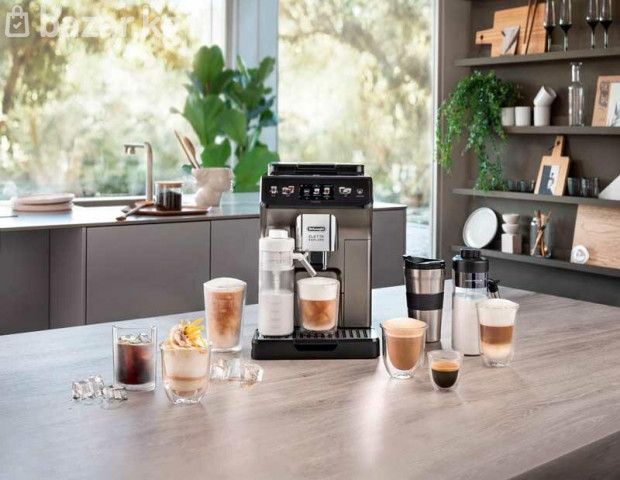 Неограниченные возможности и фантазия: легко готовьте горячие или освежающие кофейные напитки. Запатентованная система Latte Crema и De'Longhi Latte Crema Cool позволяет легко готовить вкусные кофейно-молочные напитки в домашних условиях. Eletta Explore открывает для вас бесконечное разнообразие кофе и приносит опыт истинного бариста. Благодаря 4м пользовательским профилям, вы с легкостью сможете запрограммировать и наслаждаться широким выбором рецептов горячего и холодного кофе. Функция Tubeless обеспечивает всегда свежий кофе у вас в чашке, сразу после помола, кофе напрямую попадает в заварочный блок. Встроенная кофемолка с металлическими жерновами имеет 13 степеней помола – выбирайте в зависимости от сорта зерен и ваших предпочтений. За управление отвечают цветной 3,5-дюймовый TFT-дисплей и сенсорные кнопки. Наглядные изображения помогут быстро разобраться в настройках. Есть возможность выбрать объем порции, вкус (крепость), температуру, плотность пены. Пользователь может сохранить наиболее часто используемые параметры в отдельный профиль. Основные характеристики Дисплей 3,5 ", цветной TFT, сенсорная панель Тип управления сенсорный, с подсветкой кнопок Цвет титановый Вес нетто, кг 11,4 Автоотключение Да Технические характеристики Давление, бар 19 Тип используемого кофе зерновой или молотый Объем контейнера для зерен, г 300 Объем резервуара для воды 1,8 Материал корпуса пластик Комплектация Контейнер для молока (latte crema hot, latte crema cool); фильтр воды; чашка To Go; мерная ложка; силиконовая форма для льда; средство для удаления накипи EcoDecalk; чистящая щеточка; инструкция Индикация очистки от накипи Да Регулировка крепости кофе Да Регулировка диспенсера по высоте Да Подача горячей воды Да Съемный заварочный блок да