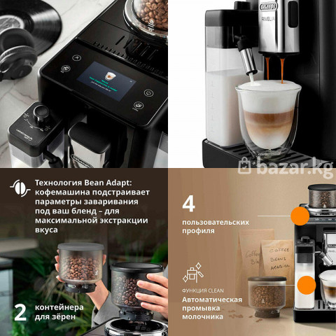 Погрузитесь в фантастический мир кофе с помощью Rivelia. Откройте для себя бесконечное разнообразие сортов кофейных зерен благодаря уникальной системе Bean Switch. Наслаждайтесь захватывающими впечатлениями на ярком 3,5-дюймовом сенсорном цветном дисплее с разнообразной анимацией и предустановленными программами приготовления кофе, которые можно настроить под ваши предпочтения. Добавьте ваши молочные напитки пышную и насыщенную пену с помощью технологии LatteCrema Hot, доступной в этой компактной кофемашине, которая также выделяется своим стильным дизайном. Кофемашина De'Longhi Rivelia предлагает различные преимущества и функции, которые позволят вам наслаждаться кофе максимально комфортно и без усилий. Система переключения зерен позволяет вам легко переключаться между различными сортами кофе и исследовать их вкусовые особенности. Технология Bean Adapt автоматически адаптирует уровень помола, дозу кофе и температуру заваривания в соответствии с выбранными вами зернами, чтобы каждая чашка кофе получилась идеальной. Автоматическая система LatteCrema Hot обеспечивает приготовление пышной и насыщенной молочной пены, идеально подходящей для вашего любимого молочного кофе. Интуитивно понятный цветной дисплей с диагональю 3,5 дюйма обеспечивает удобное управление всеми функциями кофемашины. Вы можете выбрать из 16 различных напитков всего лишь одним касанием. С Rivelia от De'Longhi вы сможете наслаждаться лучшим кофе, настроенным под ваш вкус и требования, в любое время дня. Кроме того, стильный и компактный дизайн с закругленными углами и черным оттенком оникса делает эту кофемашину прекрасным дополнением любой кухни или офисного помещения. Основные характеристики Цвет товара бежевый Тип устройства кофемашина Тип используемого кофе молотый / зерновой Материал жерновов сталь Мощность 1450 Вт Объем 1.4 л Давление помпы 19 бар Капучинатор есть Тип управления сенсорное Предустановленные напитки 16, Холодный кофе / Холодный эспрессо/ Холодный американо/ Эспрессо / Эспрессо лунго / Кофе / Лонг / Американо / Капучино / Латте Маккиато / Смесь Капучино / Горячее молоко / Кофелатте / Флэт Уайт / Кортадо / Эспрессо Маккиато Конструкция Материал корпуса пластик Особенности конструкции контейнер для отходов Кофемолка Встроенная кофемолка есть Объем контейнера для зерен, г 250 Количество степеней помола 13 Регулировка крепости кофе Да