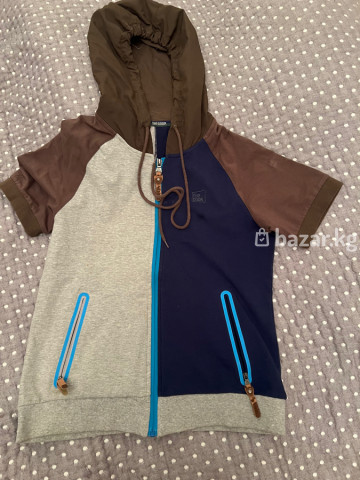 Кофта с коротким рукавом имеется капьюшон