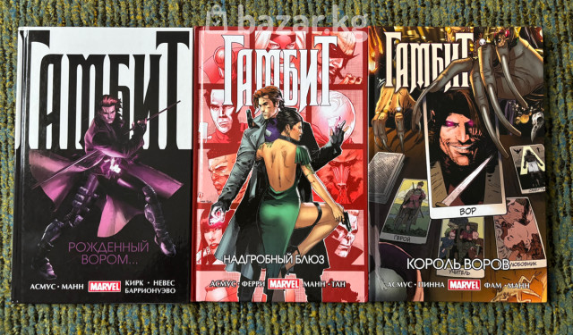 Продаю комплект из 3 томов комикса «Гамбит» (Marvel) из частной коллекции. Серия Джеймса Асмуса с рисунком Клея Манна и соавторов. Русское издание fanzon/Marvel (2017), твердый переплет, полноцвет. Состав комплекта: 1) «Гамбит: Рожденный вором…» — сборник выпусков Gambit (vol.5) #1–7. Авторы: Джеймс Асмус, Клей Манн, Диого Невес, Леонардо Кирк, Альфонсо Баррионулво. 2) «Гамбит: Надгробный блюз» — сборник выпусков #8–12. Авторы: Асмус, Паскал Ферри, Клей Манн, Папоус Тан. 3) «Гамбит: Король воров / Любовник / Учитель / Герой / Вор / Смерть» — финал серии, сборник выпусков #13–17. Авторы: Асмус, ДеКлан Шалви/Пинна, Клей Манн, Фам. Особенности: - Полная завершенная арка о Реми Лебо (Гамбите): ограбления, шпионские интриги, приключения по миру и камео персонажей Marvel. - Качественная печать, твердые обложки, локализованные редакционные материалы. - Яркая динамичная графика Клея Манна, вкрапления работ Ферри, Пинны, Тана и др. - Подойдет коллекционерам Marvel и поклонникам Людей Икс. Хэштеги: #марвел #marvel #comics #комиксы #гамбит