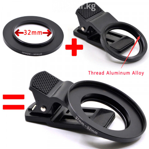 Зажим для объектива камеры телефона 37 мм-52 мм Внутреннее отверстие 32 мм, которое подходит для большинства мобильных телефонов и планшетов на рынке Материал: АБС + алюминийРезьба из алюминиевого сплава для обеспечения лучшего срока службы Размер интерфейса: m37мм * P0.75 Это переходное кольцо 37 мм-52 мм, в него можно добавить Фильтры для камеры 52 мм Или 37 мм фильтр для камеры напрямую