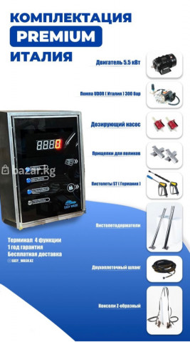 Комплектация PREMIUM (Италия) для автомойки самообслуживания, самомойки EASY WASH Характеристики: - Терминал на 4 функции (цифровой дисплей). - Двигатель 5.5 кВт. - Насос UDOR (Италия) 300 бар. - Дозирующий насос. - Прищепки для поликов. - Пистолеты ST (Германия). - Пистолетодержатели. - Двухоплеточный шланг. - Консоли Z-образные. Идеально для оснащения постов мойки самообслуживания: высокое давление до 300 бар, надежные европейские компоненты, удобный терминал с 4 режимами работы. Дополнительно: -Год гарантии -Скидки -Возможность добавить доп функцию -Установка QR оплаты -Нанесение вашего логотипа -Консультация -Бесплатная доставка по Бишкеку (Возможна доставка по регионам) 📍Адрес: Аламединский базар, Семена Буденного 138/1, Торговый дом Актан (Напротив ТЦ Табылга) Первый этаж, офис D6 бутик, EASY WASH 📞Звоните или пишите в WhatsApp УСПЕЙТЕ ЗАКАЗАТЬ! 💰Цена ниже рыночной! Отличный вариант для быстрого старта и быстрой окупаемости