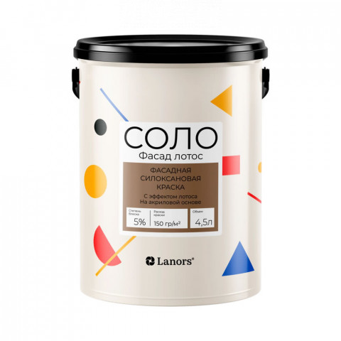 Краска Lanors Соло «Фасад Лотос» Стирол-акриловый сополимер модифицированный силоксановой смолой. Краска отличается хорошим укрывом, превосходной адгезией, влагозащитой, паропроницаемостью. При нанесении образует равномерную матовую поверхность с эффектом лотоса. Хорошо защищает поверхность от атмосферных осадков. Особенности: - Атмосферостойкая; - Стойкая к выгоранию; - Паропроницаемая; - Отличная укрывистость; - Защищает от грибка и плесени; - Степень блеска – 5 глосс; - Класс истираемости – 1; - Расход краски – 120 мл/м2; - Подходит для краскопульта; - Превосходная адгезия; *Покрытие предназначено только для колорантов на водной основе. *Другие цвета: Возможна колеровка в различные цветовые палитры. Объем, л: - 4,5 л - 9 л. База: - P - Tr