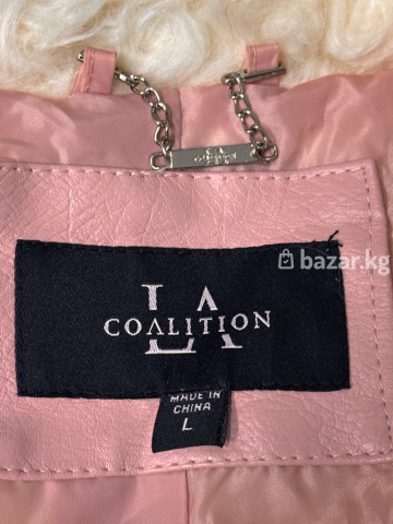 • Состояние: 6/10 (Удовлетворительное; есть заметные потертости и повреждения материала на спине и рукавах). • Функциональность: 9/10 (Основная молния и молнии на карманах работают исправно). • Категория: Женская одежда. • Бренд: L.A. Coalition. • Размер: L (Large). • Цвет: Пастельно-розовый. • Материал: Искусственная кожа с отделкой из мягкого искусственного меха на воротнике и по нижнему краю. • Особенности: Силуэт в стиле «косухи», несколько карманов на молнии, металлическая цепочка-вешалка.