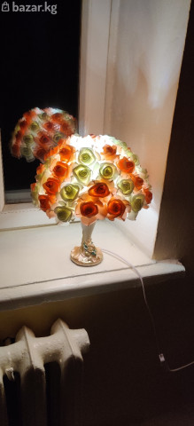 Настольная лампа-букет «Розы» - Декоративный абажур в виде плотного букета роз: сочетания белых, розовых и персиковых цветов, отдельные бутоны с лёгким блёсточным декором. - Основание из декоративного пластика/керамики с рельефными цветочными элементами в пастельных тонах. - Мягкое рассеянное теплое свечение, создаёт уют и атмосферную подсветку. - Питание от сети через шнур с выключателем. - Подходит для прикроватной тумбы, подоконника, гостиной, детской или романтического декора. - Легкая и компактная, не занимает много места. - Отличный акцент в интерьере и эффектный подарок.