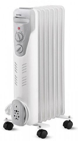 Там, где радиатор VITEK VT-1708 W – всегда тепло и уют. 7 секций и мощность 1500 Вт быстро поднимут температуру воздуха в помещении до 20 кв. м. При этом специальные термические щели обеспечат равномерную циркуляцию теплого воздуха, так что его температура будет одинаковой и у пола, и у потолка. Пользоваться радиатором просто и удобно – достаточно выбрать нужную мощность и плавно отрегулировать температуру с помощью тумблера термостата. Обогреватель оснащен колесиками и ручкой для перемещения, что вкупе с небольшим весом и компактными размерами делает его очень маневренным и легким в перемещении. Контролировать состояние радиатора вам поможет специальный индикатор, а функция отключения при перегреве или опрокидывании предотвратит возможные неприятности, если вы вдруг забудете вовремя отключить прибор. Технические характеристики Цвет товара белый Тип обогревателя масляный радиатор Комплект напольной установки колеса Площадь обогреваемого помещения 16 м² Потребляемая мощность 1.5 кВт Количество секций 7 Количество режимов работы 1 Функциональность Особенности регулировка температуры, термостат Управление механическое Установка напольная Индикация включения Дополнительно Системы защиты отключение при опрокидывании, отключение при перегреве Дополнительная информация напряжение: 220/230 В; отделение для шнура; ручка для перемещения; регулировка мощности; выключатель со световым индикатором; каминный эффект Габариты и вес Ширина 38.2 см Толщина 13.4 см Высота 62.8 см Вес 6.3 кг