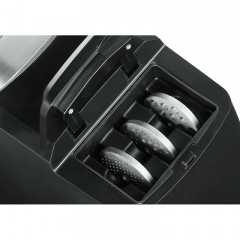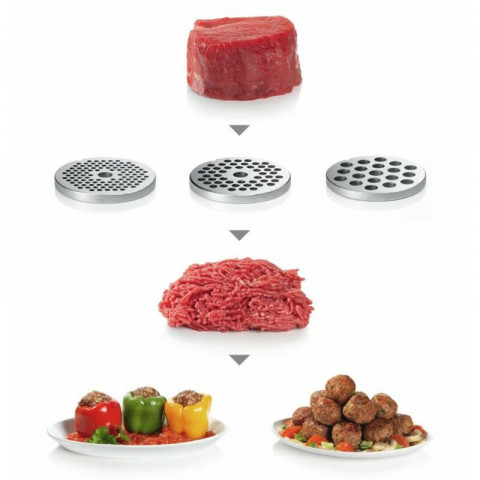 Мощная мясорубка обеспечивает быстрый и качественный результат, надежная и многофункциональная. Быстрая переработка мяса благодаря мощному мотору. Высокая производительность до 4,3 кг/мин. Больше, чем просто мясорубка: делает фарш разной консистенции, из фарша формирует колбаски, шинкует овощи, натирает сыр, измельчает орехи. Легко переносить благодаря практичной ручке. Отсек для хранения формовочных дисков. Возможность приготовить колбаски и кеббе. Технические характеристики Мощность номинальная - 800 Вт Мощность при блокировке 2200 Вт Система реверса есть Насадки Перфорированный диск для фарша есть Насадка для шинковки есть Насадка для приготовления колбас есть Прочие насадки для кеббе Особенности Прорезиненные ножки есть Отсек для хранения насадок есть Сделано в КНР