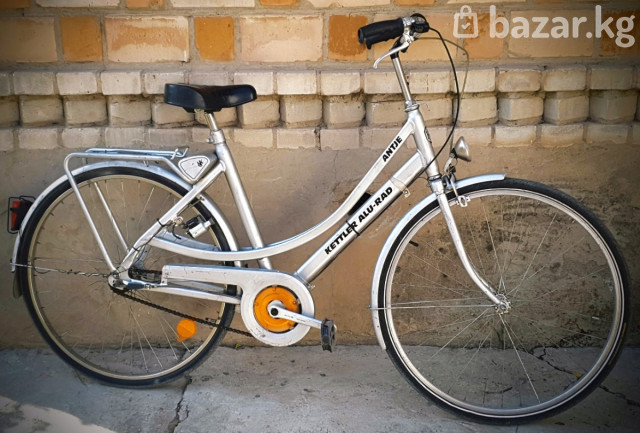 Немецкий городской велосипед Kettler Alu-Rad Antje - торг уместен - Имеет легкую алюминиевую раму со заниженной посадкой, удобна для повседневных поездок и не только - 28" колёса с узкими городскими покрышками для лёгкого хода по асфальту - Планетарная втулка с тремя скоростями (переключение в задней втулке) - Полный кожух цепи и крылья — одежда остаётся чистой - Передние ручные тормоза - Комфортное прямое положение посадки, высокий руль и мягкое седло - Динамо-освещение: фара спереди и задний катафот - Багажник с пружинным фиксатором для сумок и грузов - Защитные отражатели на колёсах Практичный городской байк для ежедневных поездок по городу, работы или прогулок. Модель ориентирована на комфорт и неприхотливость в обслуживании.