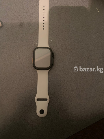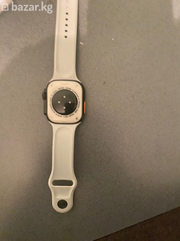 Смарт‑часы в стиле Apple Watch (корпус прямоугольный с закруглёнными углами, боковая кнопка и колесико, оранжевая клавиша действия). Цвет корпуса — тёмный, ремешок силиконовый светло‑серый/белый с классической застёжкой и множеством отверстий для регулировки. Основные особенности: - Сенсорный дисплей с яркой неоновой/фиолетовой подсветкой циферблата (аналоговые стрелки поверх крупного цифрового индикатора). - Датчик на задней крышке для измерения пульса/отслеживания активности. - Магнитная область для зарядки на «спинке» часов. - Универсальный спортивный ремешок, мягкий и водоотталкивающий, легко снимается и меняется. - Подходит для повседневного ношения и тренировок: шаги, пульс, уведомления, будильник, таймер и пр. (функции зависят от прошивки и сопряжения со смартфоном). Комплект на фото: часы с установленным спортивным ремешком светлого цвета.