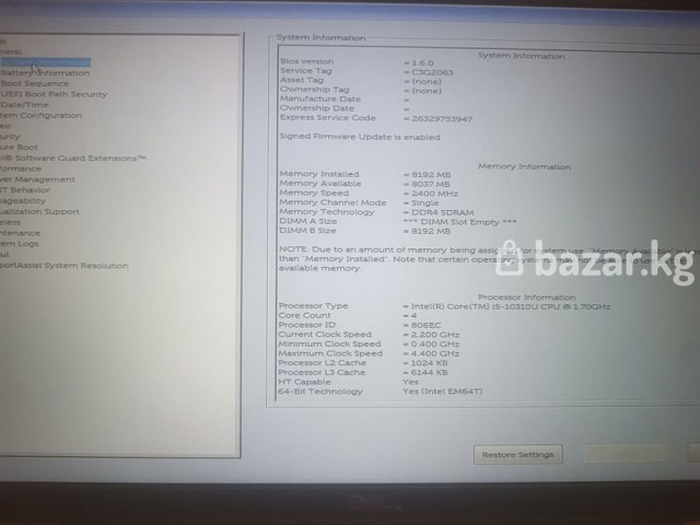 Ноутбук Dell Latitude 5510, intel core i5-10310 @3.4ghz, 8gb, 256gb ssd, 15.6/матовый Touch FullHd (1920 х 1080) Ноутбук Dell Latitude 5510 Отличное состоянии!!! Процессор: Intel core i5-10310 (1.2ghz up to 3.4ghz with intel® turbo boost technology) Оперативная память: 8 Gb DDR4 Жесткий диск: 256 GB ssd Графика: intel uhd 1GB Экран: 15.6/матовый Touch, FullHd(1920 х 1080) Батарея: рабочая Клавиатура: без подсветки Звук: громкий, чистый Цвет: серебро Телефон: 0557 72 51 25 Цена: 18000 сом