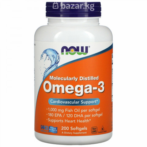 Описание Omega 3 1000 mg NOW Foods Омега-3 представляет собой смесь Омега-3 - рыбий жир из лосося, скумбрии, анчоусов и сардин. Omega-3 - для профилактики и лечения болезней сердечно-сосудистой, нервной, эндокринной, пищеварительной систем, при аллергии, заболеваниях мозга, кожи.Ненасыщенные жирные кислоты класса Омега-3, получаемые из жира морских рыб, значительно снижают риск сердечно-сосудистых заболеваний, регулируют воспалительный процессы, аллергические реакции. Также под контролем ненасыщенных жирных кислот оказываются: уровень болевого синдрома, свертываемость крови, функции желудочно-кишечного тракта, почек и нервной системы, а также синтез гормонов щитовидной, поджелудочной желез и надпочечников. Ненасыщенные жирные кислоты являются строительными блоками для построения клеточных мембран, повышают выработку клеточной энергии, нормализуют работу мозга и органов зрения, подавляют рост новообразований. Регулярное употребление NOW Омега-3 улучшает кровообращение, препятствует образованию тромбов, снижает уровень «плохого» холестерина и триглицеридов в крови. Препарат не содержит сахар и консерванты. Размер порции: 2 капс. Калории 20 Калории от жиров 20 Всего жиров 2g 3 Насыщенные жиры <0,5 г 0 Полиненасыщенные жиры 1g † Мононенасыщенных жиров 0,5 г † Холестерин 0mg 0 Омега-3 жирные кислоты 680mg † Эйкозапентаеновой кислоты (EPA 360мг † Докозагексаеновой кислоты 240 мг † Другие Омега-3 жирные кислоты 80мг ** Процент дневной нормы основан на 2000 калорий в день. Ваша дневная норма может быть выше или ниже в зависимости от ваших потребностей в калориях. † Суточная доза не определена. Применение Принимайте по 1 капсуле 1-3 раза в день, после еды, запивать водой или другой жидкостью. По назначению врача - до 10 капсул в день. Курс применения - от 3 месяцев. ВкусНатурал
