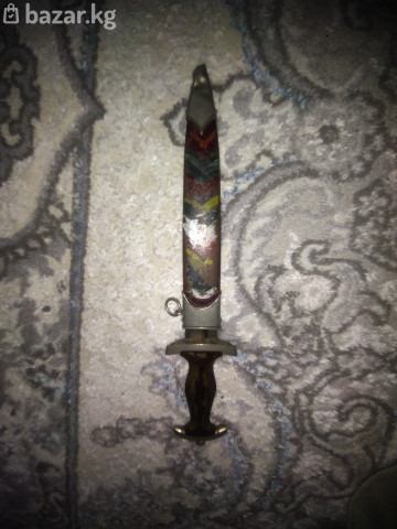 Продаю декоративный нож с уникальной наборной рукоятью. Рукоять выполнена с использованием цветных вставок, удобно лежит в руке.