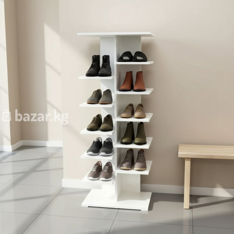 ✨ Компактная Обувница – Стиль и Порядок в Вашем Доме! 🌟 Описание товара Представляем вам современную и невероятно функциональную обувницу – идеальное решение для аккуратного хранения вашей коллекции обуви. Выполненная в чистом белом цвете, она привнесет в вашу прихожую или гардеробную ощущение простора, света и современного минимализма. Уникальный многоуровневый дизайн с асимметрично расположенными полками позволяет компактно разместить множество пар обуви, от кроссовок до ботинок, делая каждую пару легкодоступной. Забудьте о беспорядке у входа – с обувницей "Фридом" каждая пара найдет свое место! 🎨 Дизайн и Материалы: Цвет: Классический белый – универсальное решение, которое гармонично впишется в любой интерьер. Материал: Высококачественный, прочный материал, обеспечивающий долговечность и легкость в уходе. Стиль: Современный, минималистичный, геометрический. 🔑 Преимущества: Эргономичный дизайн: Многоярусное расположение полок максимально эффективно использует вертикальное пространство, освобождая пол. Вместительность: Позволяет хранить большое количество пар обуви, поддерживая порядок. Универсальность: Подходит для хранения различных типов обуви – от туфель и кроссовок до сапог и домашней обуви. Визуальная легкость: Белый цвет и открытая конструкция создают ощущение воздушности, не утяжеляя интерьер. Простота ухода: Гладкие поверхности легко очищаются от пыли и загрязнений. Современный акцент: Добавит стильный и функциональный элемент в вашу прихожую, гардеробную или спальню. 💡 Идеально подходит для: Организации пространства в прихожей. Создания порядка в гардеробной. Стильного дополнения интерьера.