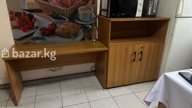 Продам офисный гарнитур итальянского производства — 60 000 сомов. В комплект входит: — 3 шкафа — 5 больших столов — дополнительный стол — 2 комода — приставка Состояние хорошее, качественная мебель, прослужит долго. Адрес Московская 217