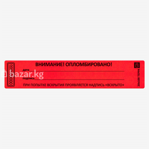 Используются для опечатывания дверей, шкафов, контейнеров, коробок, пакетов, техники и любого оборудования. При попытке отклеить — появляется надпись “ВСКРЫТО”, а повторное использование невозможно. 📏 Размеры: 21×66 мм 20×100 мм Другие размеры под заказ 🎨 Цвета в наличии: красный, синий, фиолетовый, жёлтый и другие. Каждая наклейка имеет уникальный номер, что обеспечивает строгий контроль. 💼 Применяются на складах, в логистике, банках, магазинах, госструктурах и частных компаниях. 🔥 Прочные, аккуратные, устойчивые к влаге и температурным перепадам. 🚚 Доставка по городу — при заказе от 7000 сом 💬 Работаем с юрлицами и частными клиентами ТЕРРА 21X66 = 6 сом в розницу оптом от 1000 шт = 5.4 сом ТЕРРА 20х100 шт = 8 сом в розницу оптом от 1000 шт = 7.2 сом 📦 ТЕРРА — простая и надёжная защита от несанкционированного доступа.