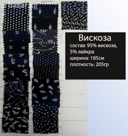 ИП Мохамад М. (г. Иваново) рад предложить вам широкий ассортимент качественной вискозы оптом, произведенной в Китае. В нашем каталоге представлена как однотонная, так и набивная (с печатью) вискоза, идеально подходящая для создания стильных и комфортных женских сорочек, туник и халатов. Подробные характеристики материала: • Состав: Оптимальное сочетание 95% вискозы и 5% лайкры обеспечивает ткани мягкость, эластичность, отличную драпируемость и устойчивость к деформации. • Ширина: 185 см – позволяет максимально эффективно использовать материал и сократить отходы при раскрое. • Плотность: 205 гр/м² – гарантирует долговечность и прекрасный внешний вид готовых изделий. • Страна производитель: Китай – зарекомендовавший себя производитель текстиля с высоким контролем качества. Наши преимущества для вашего бизнеса: • Цены ниже рыночных: Прямые поставки позволяют нам предлагать конкурентные цены, что существенно снизит ваши затраты на закупку сырья. • Оцените качество без рисков: Мы готовы предоставить бесплатные образцы материала, чтобы вы могли лично убедиться в его превосходных характеристиках. • Гибкие условия доставки: Выберите наиболее удобный вариант – оперативная доставка любой транспортной компанией по России и СНГ или самовывоз с нашего склада в Иваново. Свяжитесь с нами сегодня, чтобы получить индивидуальное предложение и начать выгодное сотрудничество!