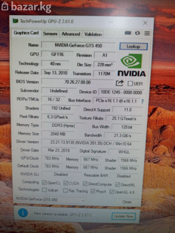 Видеокарта Palit GeForce GTS 450 2Gb DDR3 128Bit D-Sub, DVI, HDMI,VGA 6-Pin доп питание Цена 2200 Сом Гарантия 7-дней ✅В наличии материнские платы, SSD, HDD, Блоки питания, память, Корпуса, Видеокарты, как новые так и Б.У ✅Доставка по городу 150-300сом а так же в регионы ✅Для быстрого заказа ответа пишите Whatsapp ✅График работы 10.00 до 22.00 Без выходных №465