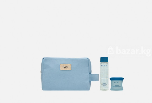 В набор увлажняющего ухода за кожей из серии SOURCE входят лосьон для увлажнения и упругости кожи PAYOT "Infusion hydratante repulpante" (125 мл), увлажняющий и защитный крем для нормальной и сухой кожи PAYOT "Crème hydratante adaptogène" (50 мл) и косметичка. Лосьон для лица с натуральными лепестками василька интенсивно увлажняет кожу и повышает её гладкость, подготавливая кожу к последующим этапам ухода. Мягкая формула включает гиалуроновую кислоту и компоненты, полученные из водорослей, благодаря которым продукт делает кожу более упругой, подтянутой и сияющей, а также помогает устранить сухость и мгновенно дарит приятное ощущение свежести. В составе – 98% ингредиентов натурального происхождения. Крем для лица с гиалуроновой кислотой, экстрактами гриба рейши и морских водорослей увлажняет кожу, возвращает ей ощущение комфорта, обеспечивает защиту и помогает коже противостоять стрессу и негативным факторам окружающей среды. В составе средства с приятной насыщенной текстурой – 95% ингредиентов натурального происхождения. Продукт подходит для нормальной и сухой кожи.