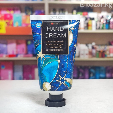 Питательный крем для рук Milv с живицей и шиммером, 40 мл Этот крем объединяет в себе глубокое восстановление и магическое сияние в одном компактном флаконе. Живица в составе необходима для того, чтобы быстро успокаивать кожу, заживлять мелкие трещинки и возвращать рукам здоровый вид. Если вы хотите не просто напитать кожу, но и добавить своему образу немного праздничного настроения, этот продукт станет идеальным решением: он моментально устраняет сухость, а мельчайшие частицы шиммера оставляют на руках деликатное мерцание. Легкая текстура быстро впитывается, позволяя использовать крем в любой момент, когда вашим рукам нужна забота и капля волшебства.