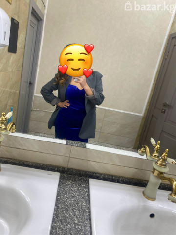 Продается очень красивое бархатное платье в голубом цвете.Имеется разрез красивый.В плечах сияющие красивые стразы .Имеется также чашка (удобно).Длина ниже колен.Размер 42-44 s-m