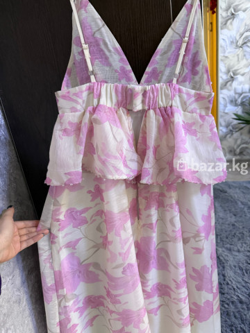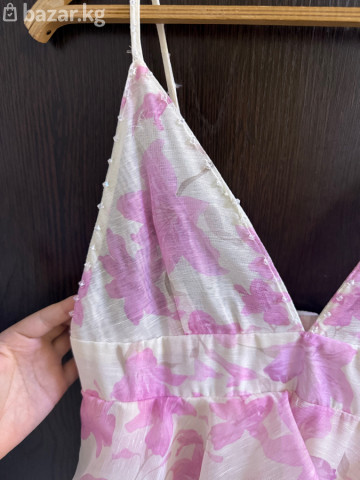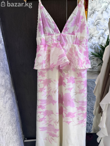 Айвори с розовыми цветами Размер М 44 На брительках Длина макси С подкладом Не просвечивает