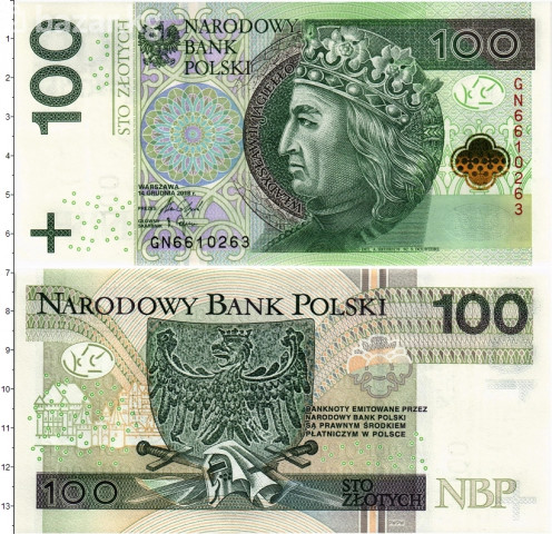 Купюра 100 польских злотых (Narodowy Bank Polski). В наличии: 1штук Характеристики: - Номинал: 100 PLN (sto złotych). - Эмиссия: Narodowy Bank Polski. - Лицевая сторона: портрет короля Владислава II Ягайло, номинал «100», многоцветная розетка, микротексты, элементы защиты (водяной знак, защитная нить, орнамент с оптически переменными элементами). - Оборотная сторона: крупный герб Польши (орёл), номинал «100», надпись о законном платёжном средстве в Польше, декоративные ленты и архитектурные мотивы. - Цветовая гамма: зелёные и серо-оливковые тона с фиолетовыми и золотистыми элементами. - Размеры: стандарт банкнотного формата (по шкале на изображении — ориентировочно около 13,8 × 6,9 см). - Дополнительные признаки подлинности: микроперфорация в виде «+», прозрачные метки, скрытые изображения, элементы для людей с нарушением зрения (выпуклая печать и тактильные метки). Сохранность: EF - «экстра файн», «eXtremely Fine» ( отличной сохранности); ❗На фото представлен пример. Серия и номер могут отличаться. ❗ Купюра подлинная и действующая. 💰 Оплата принимается: С $ € £ 📌 Купить банкноту можно за евро-монеты. Назначение: законное платёжное средство на территории Польши; также подходит для коллекционирования современных банкнот. ❕ Объявление будет удалено или деактивировано после продажи.
