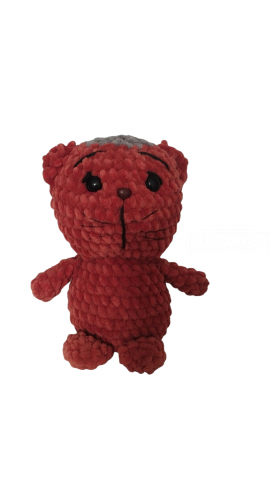 Связан из гипоаллергенной турецкой пряжи.Для подарка,декора детской комнаты.Глаза на безопасном креплении.Может сидеть ,размер 23 с