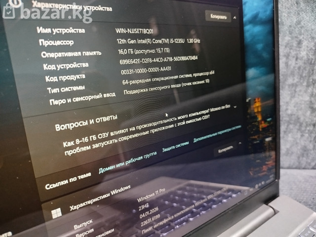 Мощный Почти новый ноутбук для любых универсальных задач. С большим запасом мощности на долгие годы. 💻Фирма HP PAVILION 15Eg Состояние как новое, проработал очень мало, привозной из США Стильный, и очень легкий металлический корпус работает очень быстро! Большой обьем памяти. Надежная модель из последних новинок. 🔦Подсветка клавиатуры 🎁при покупке в подарок: мышка, сумка для ноутбука. 📍3 месяца гарантии ❌обмена и рассрочки нет 🚗бесплатная доставка по всему кыргызстану ♦️процессор core i5-1235u режимом turboboost до 4.4 ghz (12-е поколение) 10 ядер/12 потоков. ♦️оперативная память 16 gb ♦️общая память ssd 512 gb скоростной. ♦️видеокарта intel(r) iris(r) xe - 4 gb ♦️размер экрана 15.6 дюймов full hd ips (1920x1080) тонкие рамки, отличное качество ♦️установлен свежий windows 11+программы для офиса и работы. 💻ноутбук подойдет для програмирования всех направлений| учебы| учителей| студентов| 3d работ| автокад| архикад| айтишников| работы| разных игр| фотошоп| фото обработка| таргет| бухгалтерия 1с| валдбериес| маркетплейсы| азон| графис| и подобное. ♦️есть все необходимые подключения, камера, встроенный микрофон. Wi-fi, bluetooth, usb 2:0-3.0, hdmi. Встроенные динамики, card rider, lan
