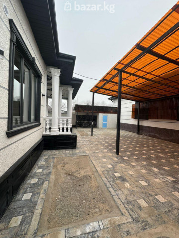 Продаю новый одноэтажный дом с Новопавловка по ул.Крупская Участок 3, Общая площадь 120м2, 3 спальни, зал,терраса,2 санузела, с большим вымощенным двориком и навесом. Отопление. Газовое один уровень, современный фасад , - Просторная крытая терраса/крыльцо на фронтальной стороне с балюстрадой. - Двор полностью выложен плиткой, удобно для парковки нескольких авто и проведения мероприятий. - Металлические распашные ворота повышенной высоты, приватный высокий забор по периметру. - Панорамные окна с тёмным профилем, современное наружное освещение. Цена 11 812 500сом (135000$) 0703870905 0553172005