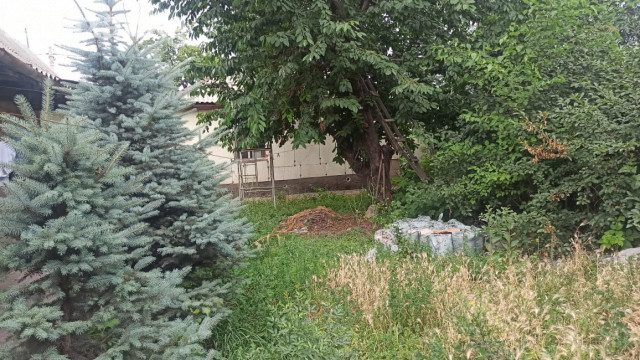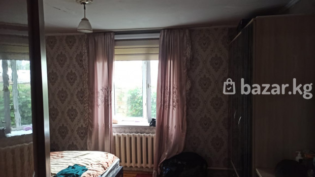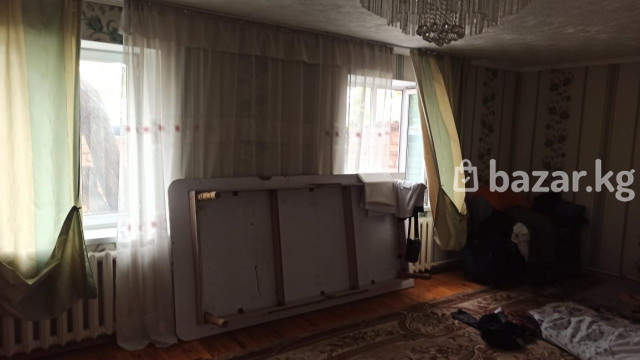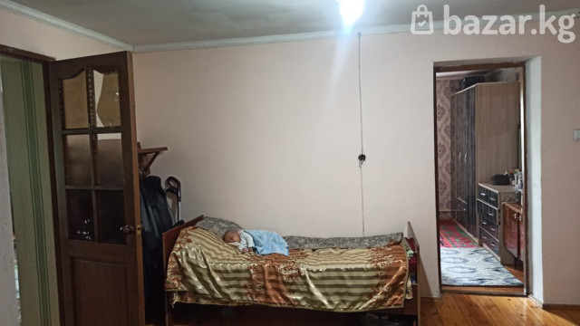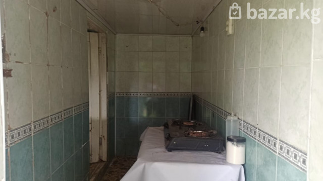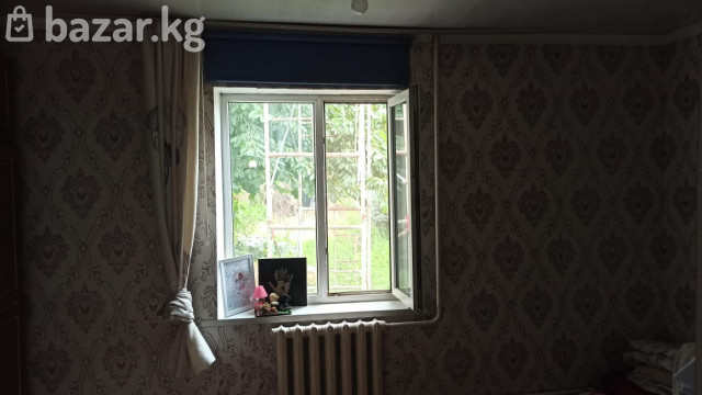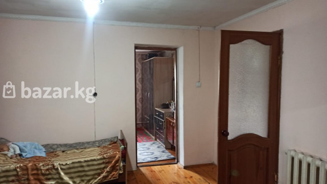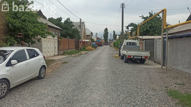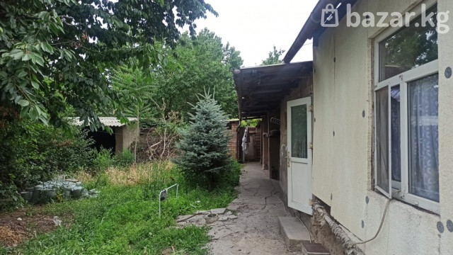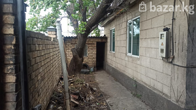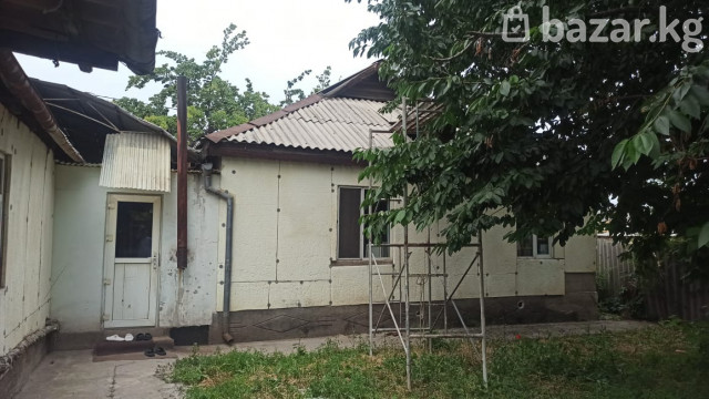 Продаётся частный дом с участком 6 сотых. - Кирпичный забор, металлические ворота, навес над въездом/двором. - Одноэтажный дом с пластиковыми окнами, вход через застеклённую дверь. Фасад утеплён плитами. - Планировка: просторная комната, коридор, кухня. Потолочная люстра, радиаторы отопления, напольное покрытие — доска/ковёр. - Кухня облицована плиткой по периметру; установлена столешница с 2‑конфорочной плитой. Есть центр. Канализация , газ, аристон. - Во дворе: зелёный участок с деревьями и кустарниками, дорожки, хозпостройки/сарай. Есть место для парковки под навесом. - электричество, отопление (радиаторы), водоснабжение/канализация по разводке внутри. Адрес на табличке: ж/м Ала Тоо ул. Кара Алма , 15. Рассмотоивается обмен на 3 комнатную квартиру.
