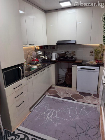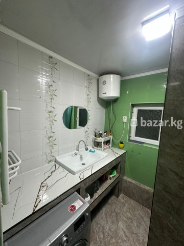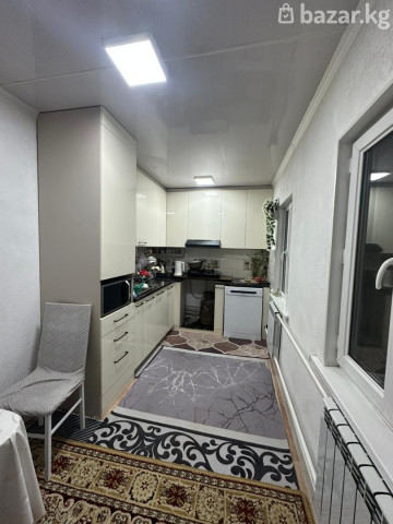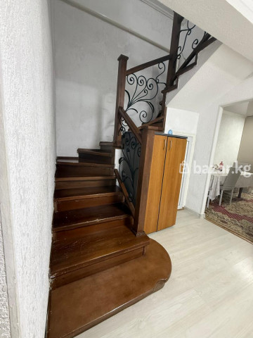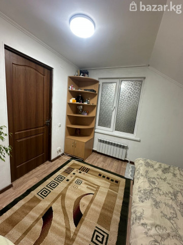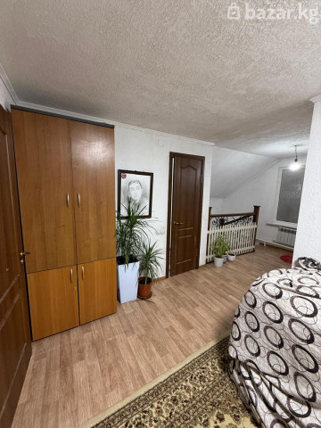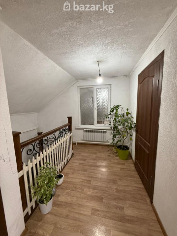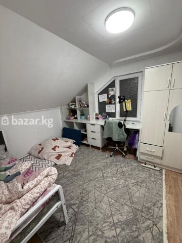 Продается уютный и светлый дом 125,74 км2, 2 этажа (жилой мансард, участок 4 сотки). Дом утепленный, с ремонтом, теплый пол на кухне, в прихожей и душевой. Первомайский район, 20 минут езды до Ошского рынка и Филармонии. На первом этаже: прихожая, коридор, кухня, санузел, зал, холл, 1 комнатка. На втором этаже: холл, 3 спальни, 1 гардеробная. Часть мебели остается: новая кухонная гарнитура, большой шкаф-купе, детский стол и шкафы. Во дворе имеется: - забор, - ворота, - хозпостройки, - сад (яблоня, персик, абрикос, черешня), - навес, - двор полностью в брусчатке, - топка (отопление угольное и электрическое), - уличный туалет и т.д. Коммуникации: вода, свет, канализация проведена - подключение к дому через 2-3 мес., газ по плану в следующем году проведут. Транспорт: 195 и 24 автобусы.