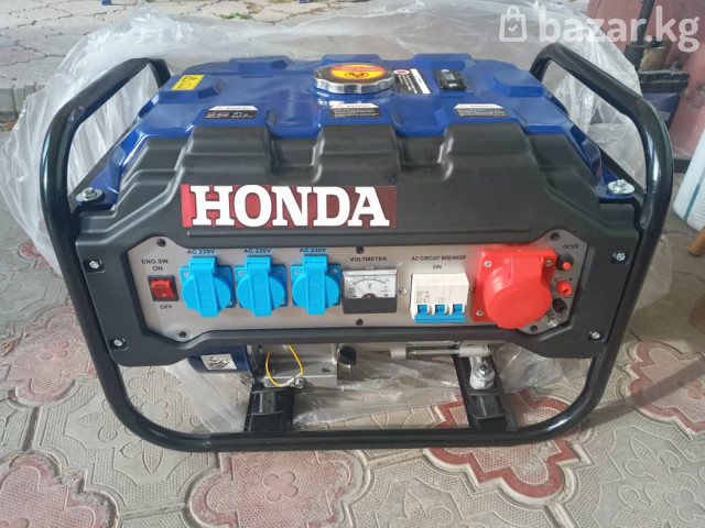 Бензиновый электрогенератор HONDA EG 6.500CXS Основные характеристики: - Мощность класса 6,5 кВА (см. маркировку модели на панели). - Двигатель 4‑тактный, 210 см³, 7 л.с. (указано на кожухе стартера). - Рама из стальной трубы, компактный переносной корпус. - Топливный бак увеличенного объема с верхней заливной горловиной. - Ручной запуск. Выходы и индикация: - Три розетки AC 220V (евроформат) на передней панели. - Одна силовая розетка 220V/32A (красная) с защитной крышкой. - DC 12V клеммы для подзарядки аккумуляторов. - Аналоговый вольтметр. - Автоматический предохранитель/выключатель Circuit Breaker. - Кнопка включения/выключения двигателя. Комплектация по фото: - Силовая розетка/вилка 32A (красная). - Набор крепежа и мелких аксессуаров. - Воронка/носик для заливки топлива. - Инструментальный набор. Особенности: - Защита от перегрузки. - Глушитель с защитным кожухом. - Удобные верхние ручки для переноски. - Прочная антивибрационная опора. Подходит для питания электроинструмента, бытовой техники и резервного электроснабжения дома/дачи/гаража.