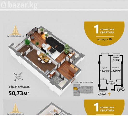 Продаю 1- комнатнатную квартиру в районе Дордой плазы Чуй \ Карпинка; Класс Жилья Бизнес Этаж 13 из 15: Строй компания «Башат» ЖК «Sunrise» Стены дома из жженного кирпича и автоклавного газоблока Утепление дома из Базальтового волокна Фасад выполнен из Керамогранита; Окна Смотрят на: запад Состояние квартиры Под Самоотделку сдан, лифты работают Документы: Договор Долевого Участия Общая Площадь: 50м2 Цена: 77000$ не большой торг (только нал) Обращайтесь по телефонам: 0702 645 312 (Whatsapp звонки) 0558 23 23 74 (Whatsapp звонки)