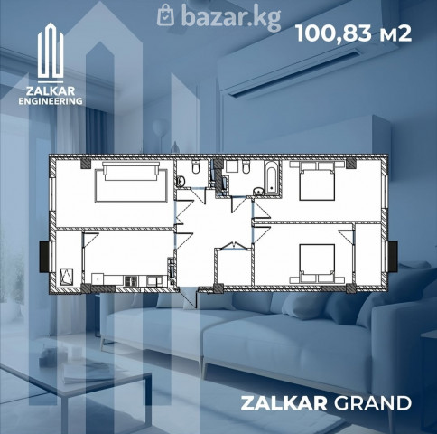 Продаю 3комн кв ПСО в мкр Тунгуч ЖК "Залкар Гранд". 2/10, 101 кв.м, ДДУ