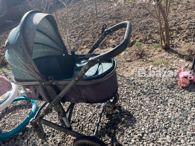 Очень удобная и красивая коляска 💚 Подходит с рождения ✔ Люлька глубокая — малышу тепло и комфортно ✔ Капюшон хорошо закрывает от солнца и ветра ✔ Колёса большие — легко едет по нашим дорогам ✔ Ручка удобная, регулируется ✔ Лёгкая в управлении Состояние: хорошее, всё работает Чистая, аккуратно пользовались