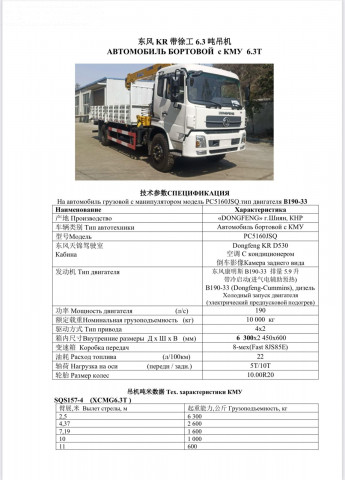Продаю! кран-манипулятор Dongfeng 2023 года выпуска *Пробег: 4600 *Объем двигателя: 5900 Основные характеристики Марка/модель: Dongfeng PC5160JSQ Тип: Бортовой грузовик с крано-манипуляторной установкой (КМУ) Мощность: 190л.с. Двигатель: Дизельный, объемом 5.9 л Экологический класс: Евро 2 Грузоподъемность: 6.3 тонна Шаси: 10 тонн Коробка передач: Механическая Цена: 44 000$ (можно в рассрочку), 41 000$ (в наличку) Рассрочка без банка и без процентов Обмен на авто с доплатой мне В наличии, в городе Бишкек Звонить: 0706550001